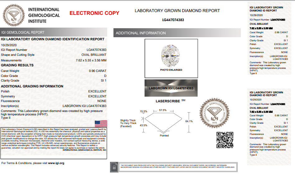 Certificats de Diamond :INTERNATIONAL GEMOLOGICAL INSTITUTE