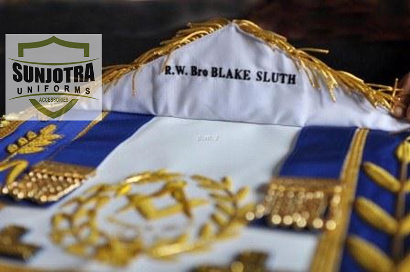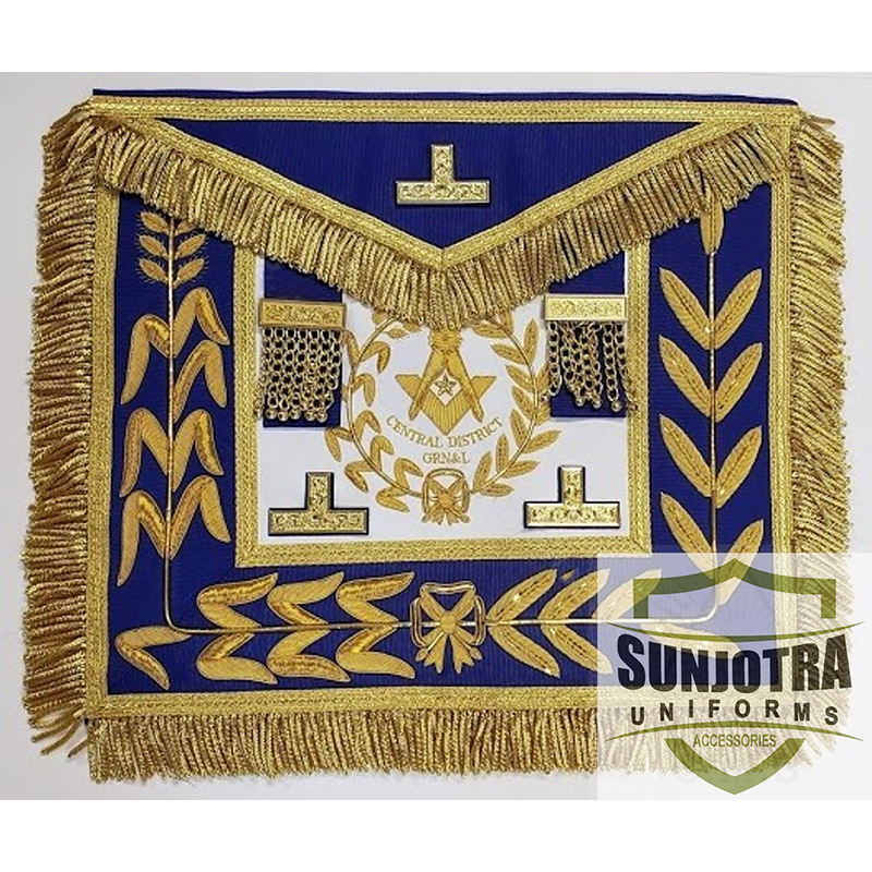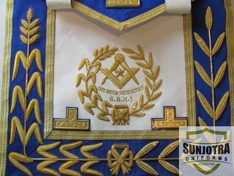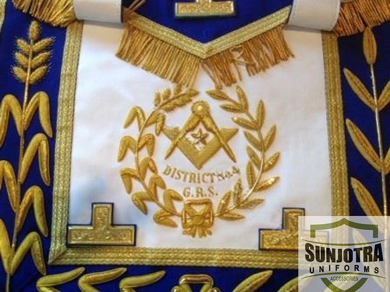 D.D.G.M Robe Tabliers avec Étoile Meilleure Qualité Brodé À La Main sur Cuir Véritable Épais Or Bullion Frange Broderie Tablier Maçonnique