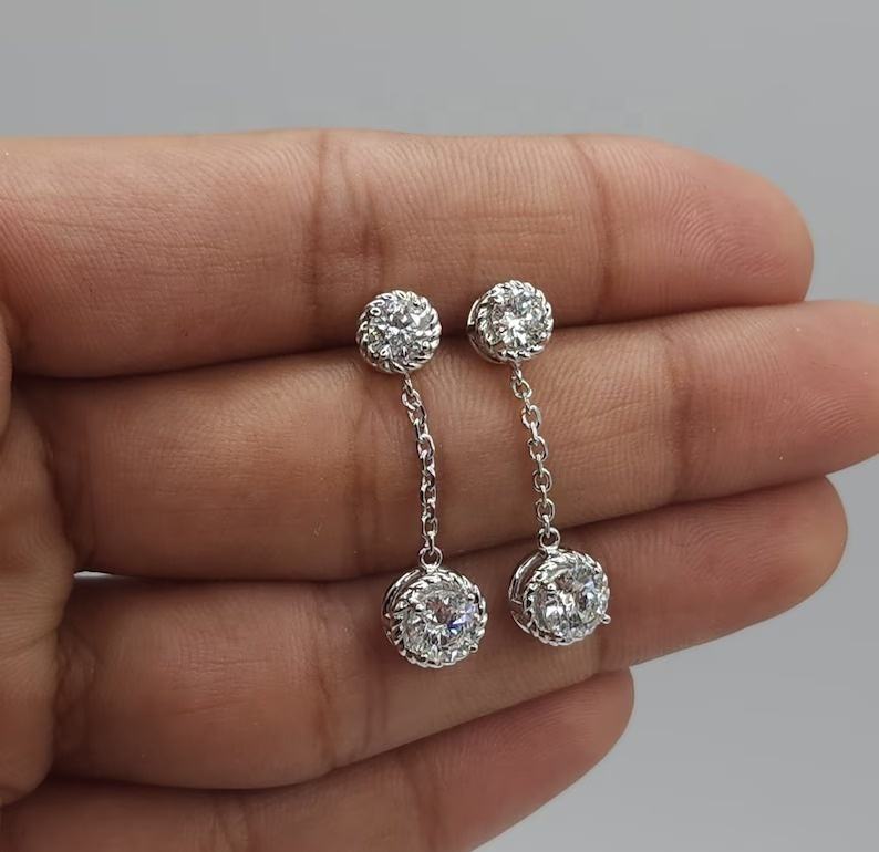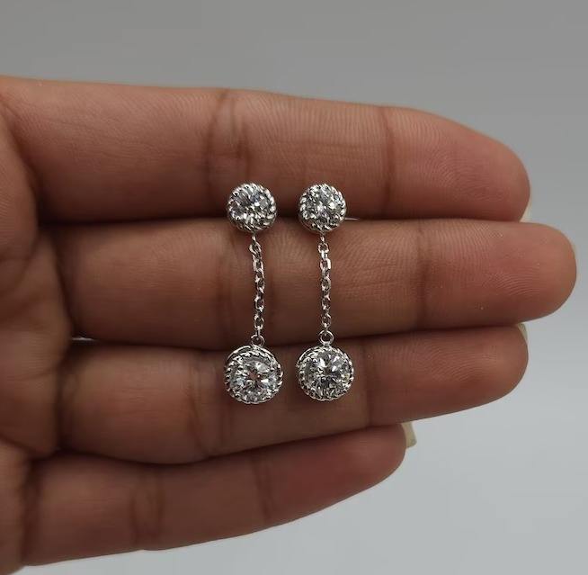D E F Couleur Ronde Lab Grown Diamants Boucles D'oreilles VS + Clarté Excellente Coupe Belles Boucles D'oreilles En Argent Sterling 925 Pour Les Femmes