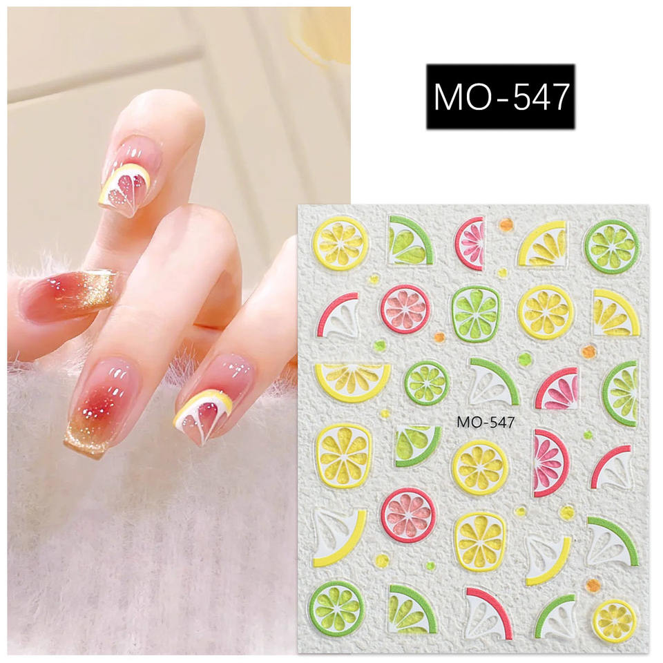 D Fruits & Cartoon Cat Nail Stickers New Fashion Gel Polish Nails Wraps Accessoires de manucure élégants avec des images de chat citron pomme