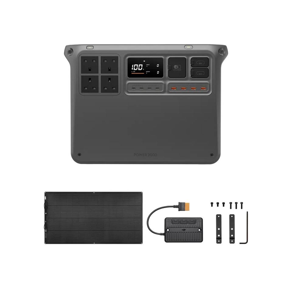 Station d'alimentation portable D J I Power 2000 et panneau solaire flexible 200W × 1