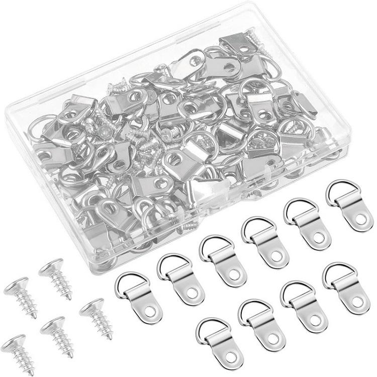 Crochets de suspension demi-ronds en D pour cadres photo, vis électroplaquées noires, usage automobile, emballage en boîte, petits accessoires de quincaillerie