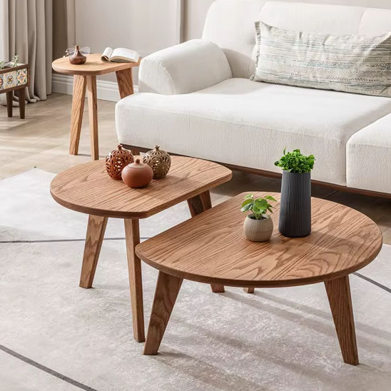 Table basse en chêne en forme de D, mobilier scandinave, table basse, finition naturelle