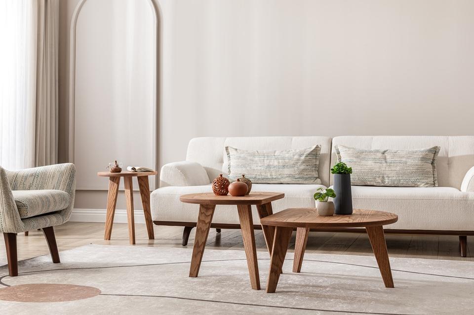 Table basse en chêne en forme de D, mobilier scandinave, table basse pour salon