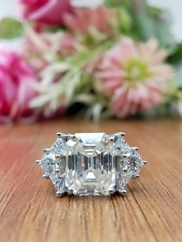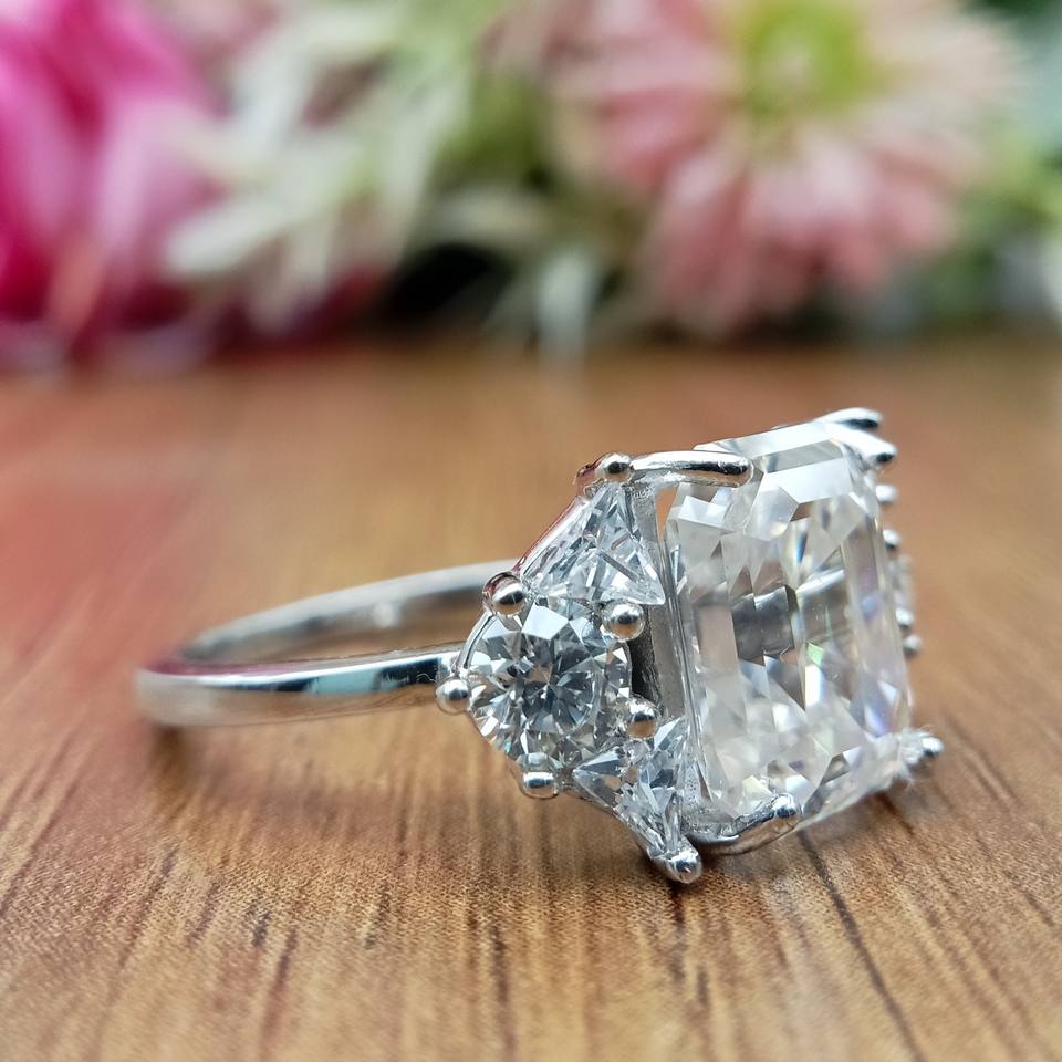 D'VINS JEWELS Bague de fiançailles et de mariage tendance, forme éclatante, taille brillante, sertie de diamants de laboratoire couleur D, plaqué or blanc et argent