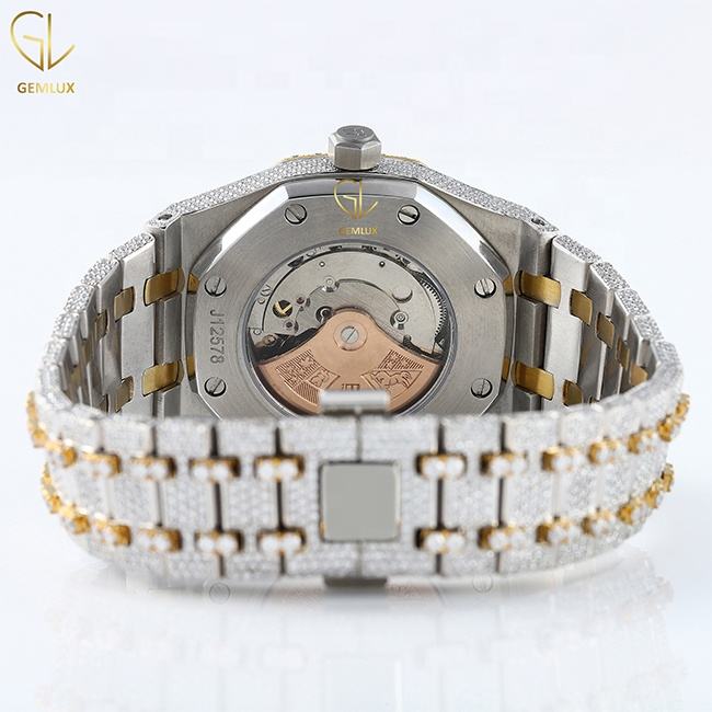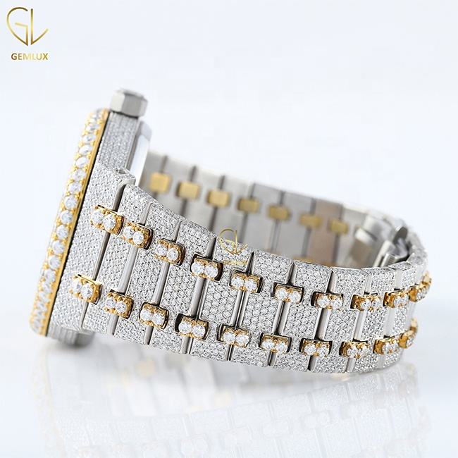 D Vvs haute qualité automatique fait à la main personnalisé entièrement glacé en acier inoxydable Hip Hop Moissanite diamant montre pour l'exportation indienne