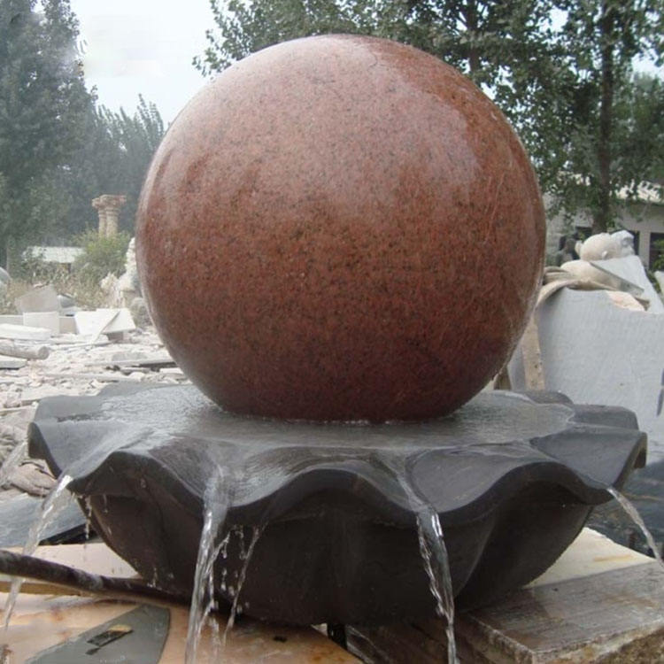 D & Z Décoration extérieure Coucher de soleil Statue en marbre rouge Boule flottante en marbre Fontaine d'eau