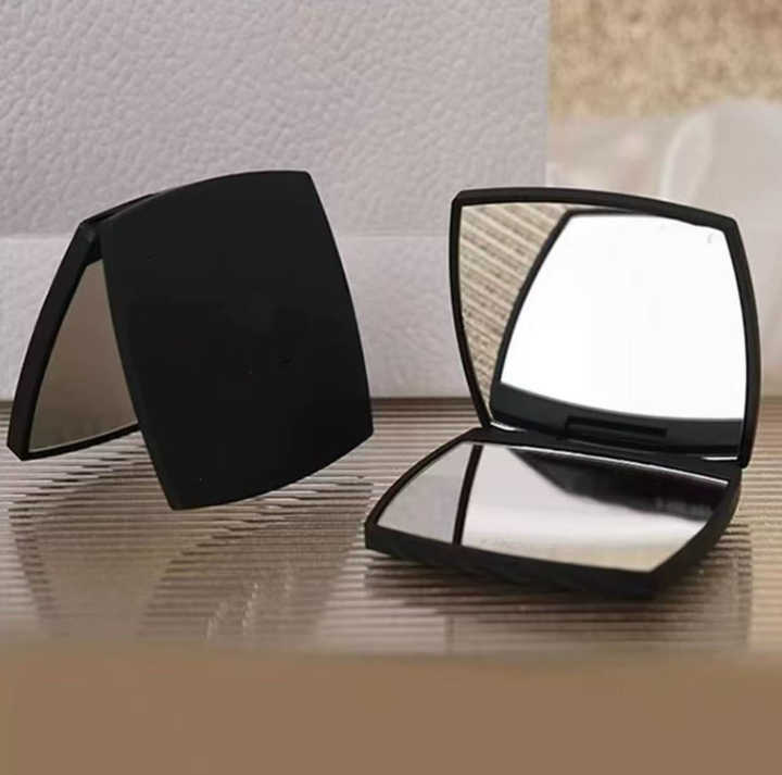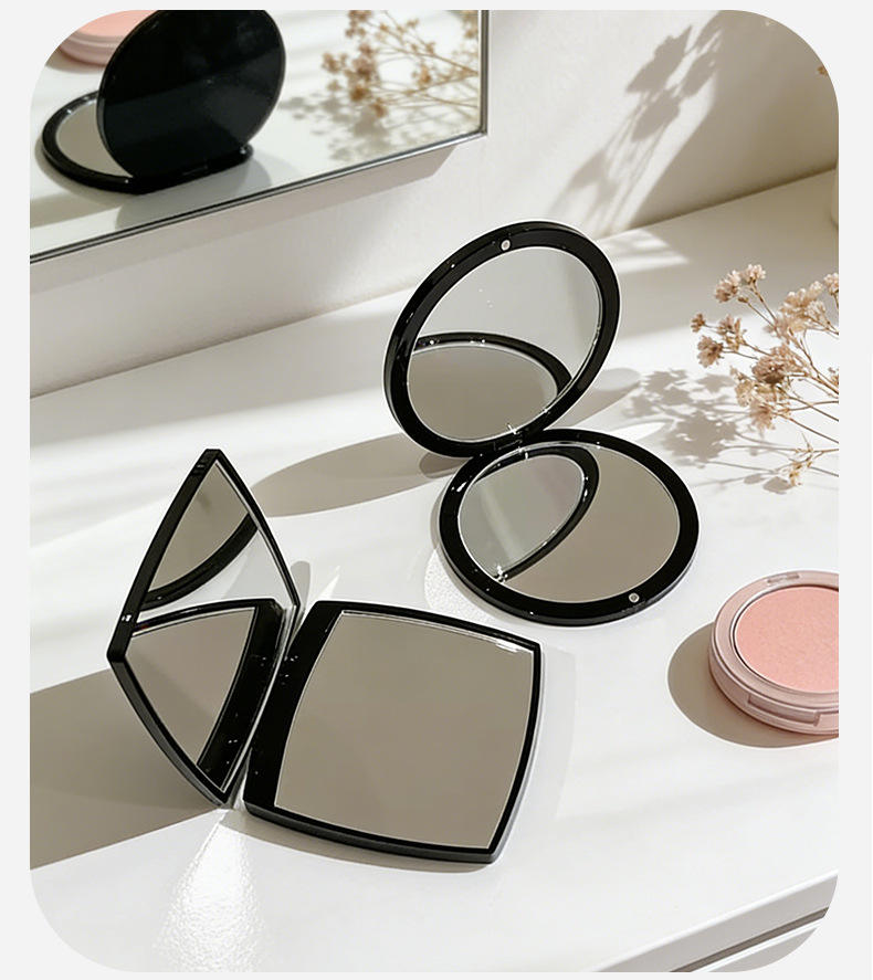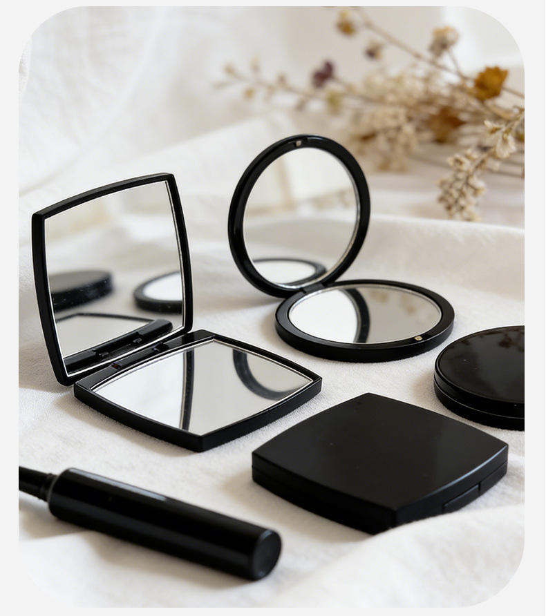 Cadeau promotionnel : Petit miroir de maquillage carré pour retouches, noir givré, grand miroir portable double face