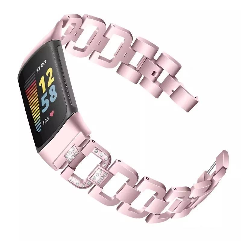 Bracelet en métal de remplacement de bracelet en forme de D pour bracelet de montre en acier inoxydable diamant de luxe Fitbit Charge 5