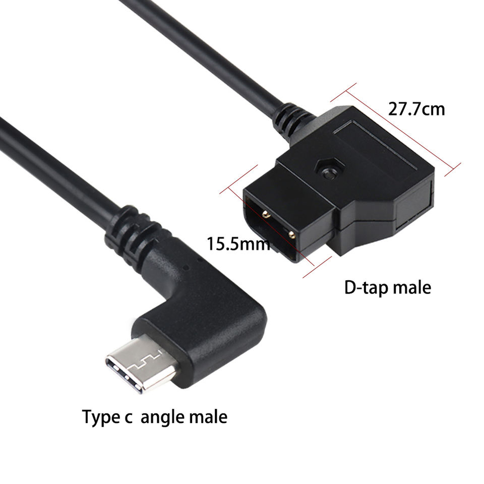 Câble de charge à angle droit D-tap vers USB Type-C Design coudé à 90 ° pour appareil photo reflex numérique Équipement vidéo | Certifié CE