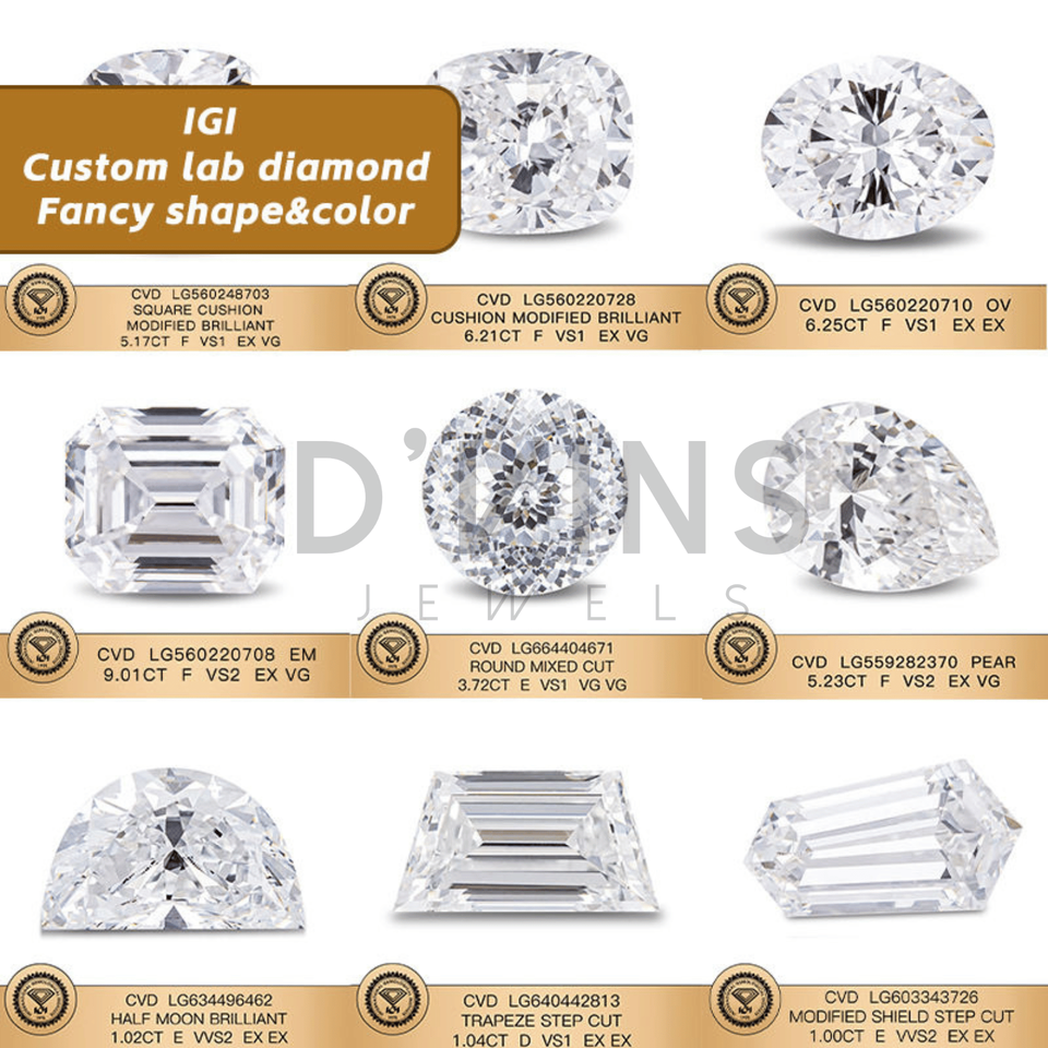Diamants ronds de laboratoire certifiés IGI D'vins Jewels, couleur D, 0,3 ct-6 ct, VVS VS, diamants en vrac pour la fabrication de bijoux
