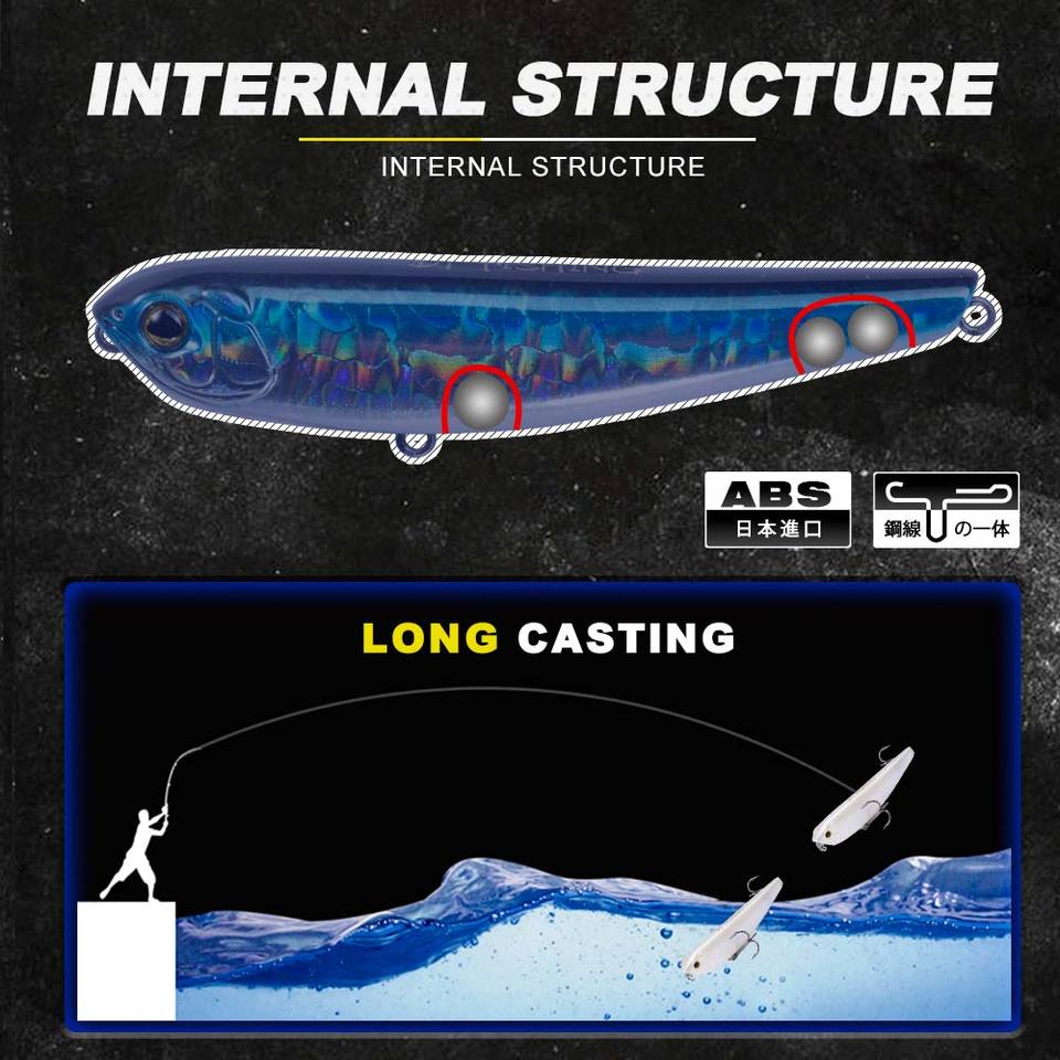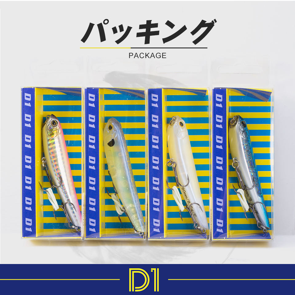 Leurre flottant D1 pour la pêche en eau salée, type crayon, action Walk the Dog, surface swimmer, 80mm/8.5g, appât pour la pêche au bar en eau salée