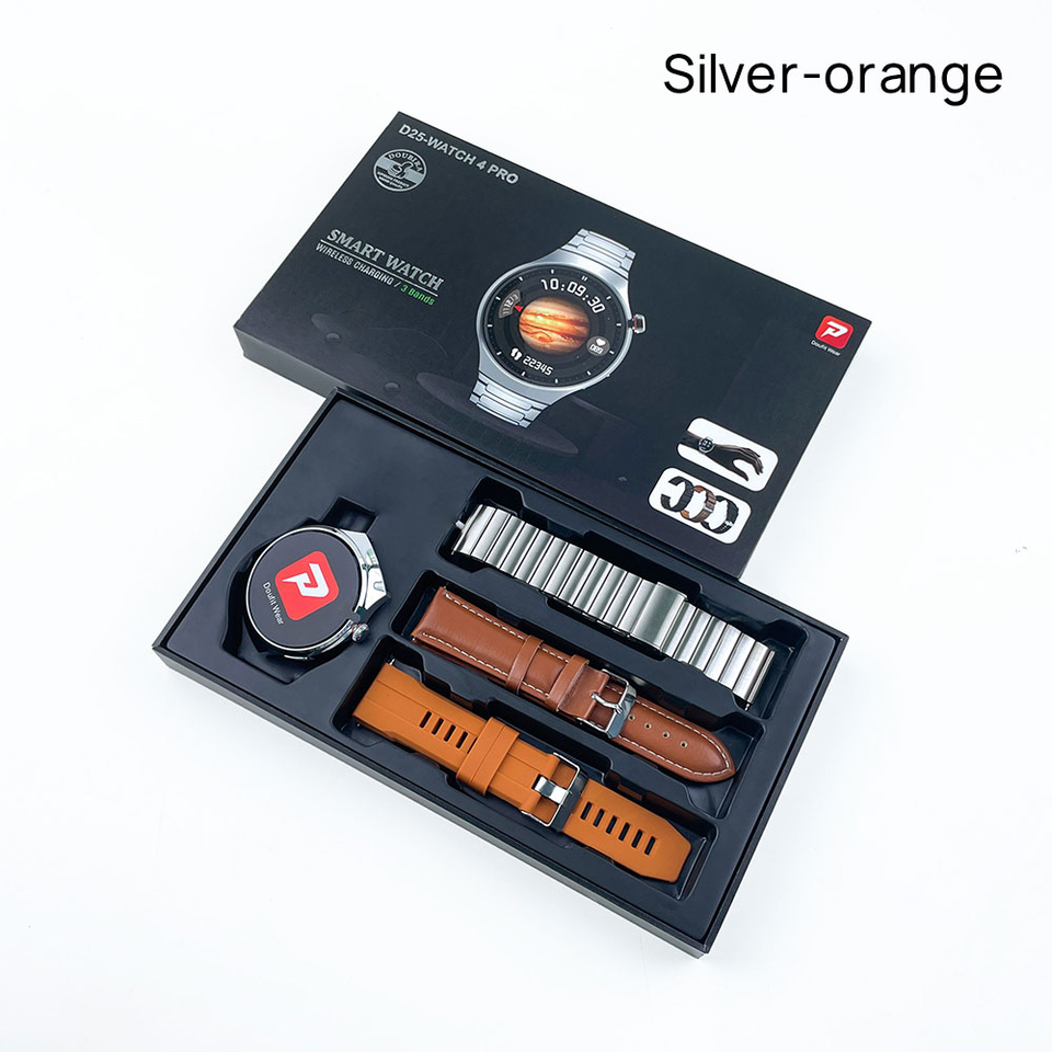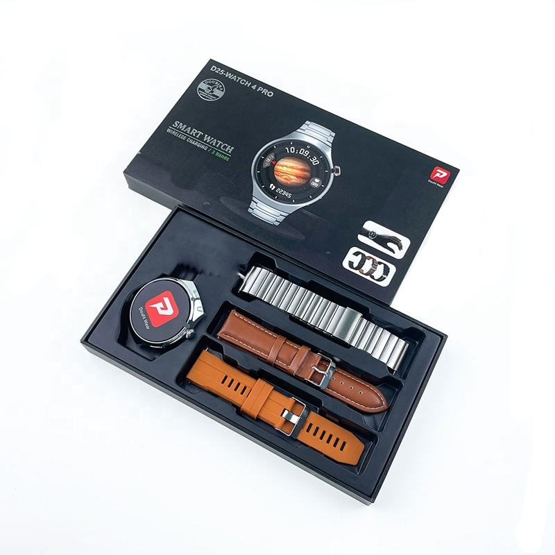 Montre intelligente D25 Watch 4 Pro avec bracelet en acier inoxydable, cuir, caoutchouc, forme ronde, charge sans fil, fonction de réponse aux appels, calendrier
