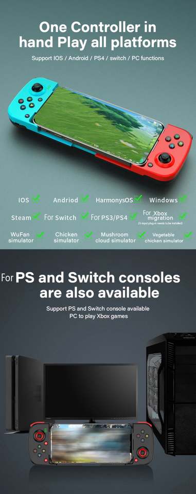 Manette de jeu sans fil D3 pour téléphone mobile, joystick BT, contrôleur de jeu compatible avec PS4, Switch, PC, iOS, Android