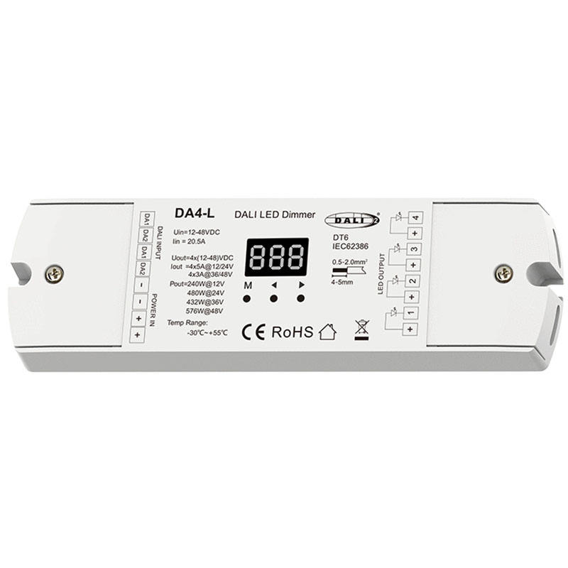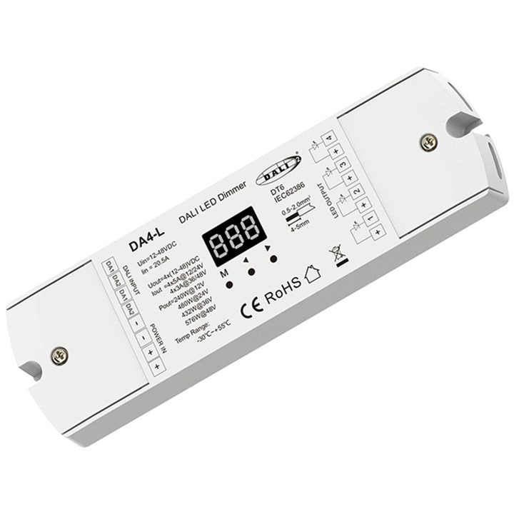 DA4-L 4 canaux 5A 12-48VDC tension constante DALI LED gradateur DALI adresse LED contrôleur PMW gradation DALI contrôleur
