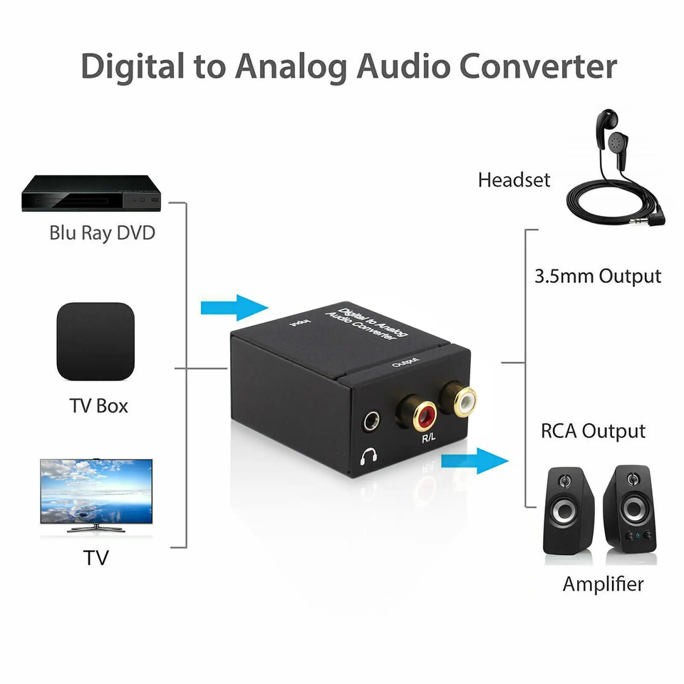 DAC avec prise jack 3,5 mm, optique Toslink, coaxial vers analogique, stéréo L/R, convertisseur audio numérique vers analogique
