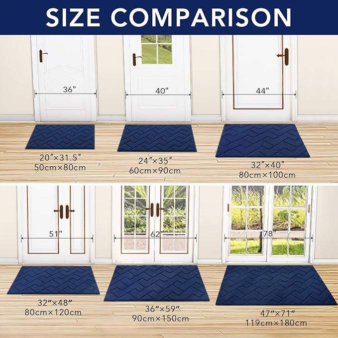 DADA bleu marine paillasson avant arrière tapis de porte antidérapant absorbant résiste à la saleté pour l'entrée lavable Jacquard polypropylène