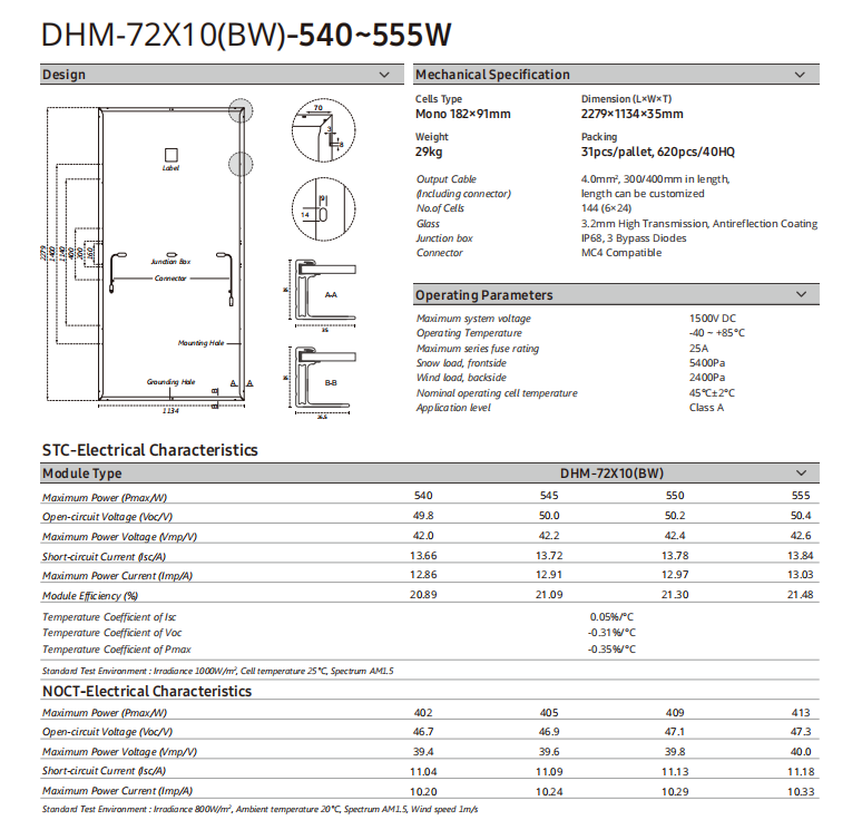 Numéro de Type:DHM-72X10(BW)-540~555W