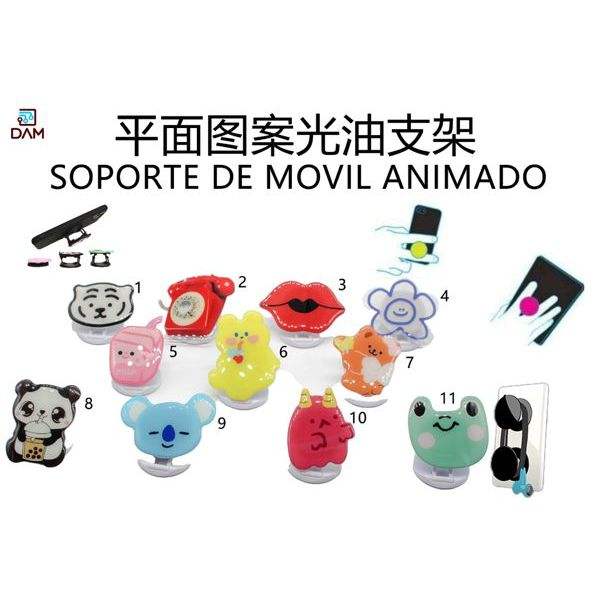 Support de téléphone adhésif DAM à motif plat, support mobile animé