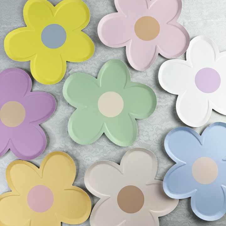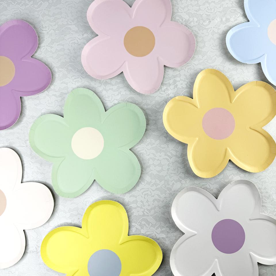 DAMAI 8PCS Assiettes en papier fleuries jetables 9 pouces, assiettes en forme de fleur, assiettes rétro pour anniversaire, mariage, fournitures de fête