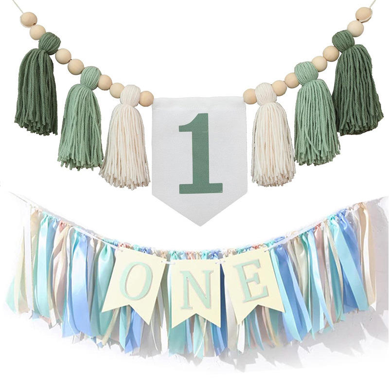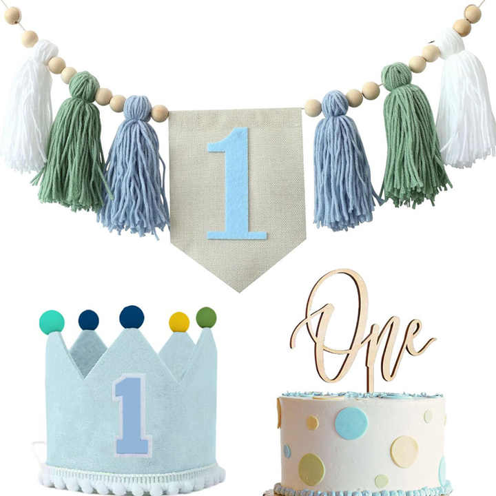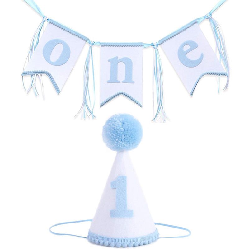 DAMAI fête d'anniversaire décoration ensemble pour filles et garçons chaise haute bannière chapeau gâteau Topper bébé 1er anniversaire fête décorations