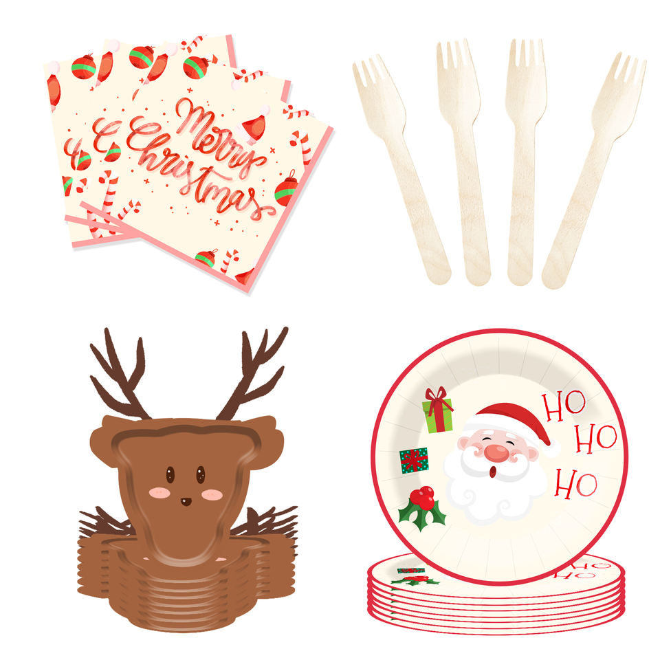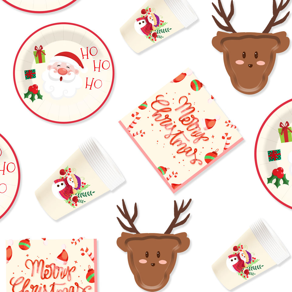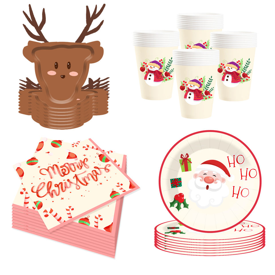 Ensemble de vaisselle de Noël créatif DAMAI comprenant des assiettes en papier en forme de cerf, des gobelets et des serviettes pour la décoration de table de fête de Noël