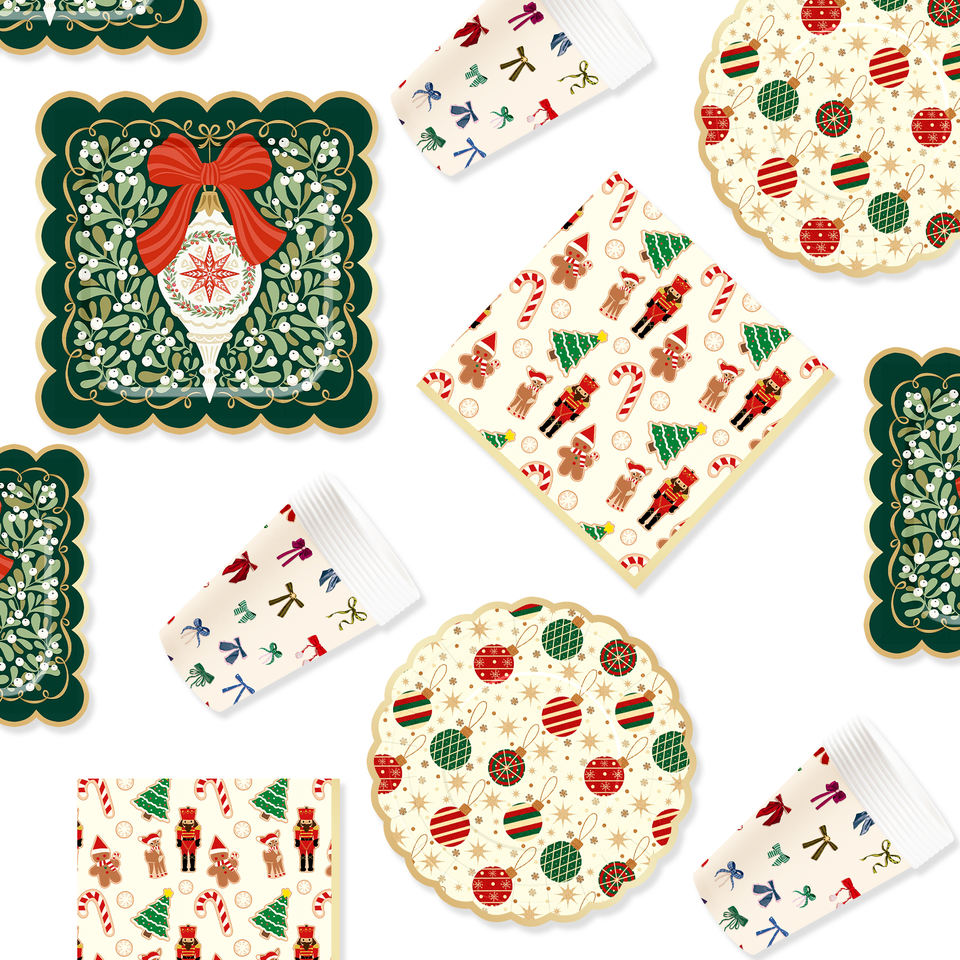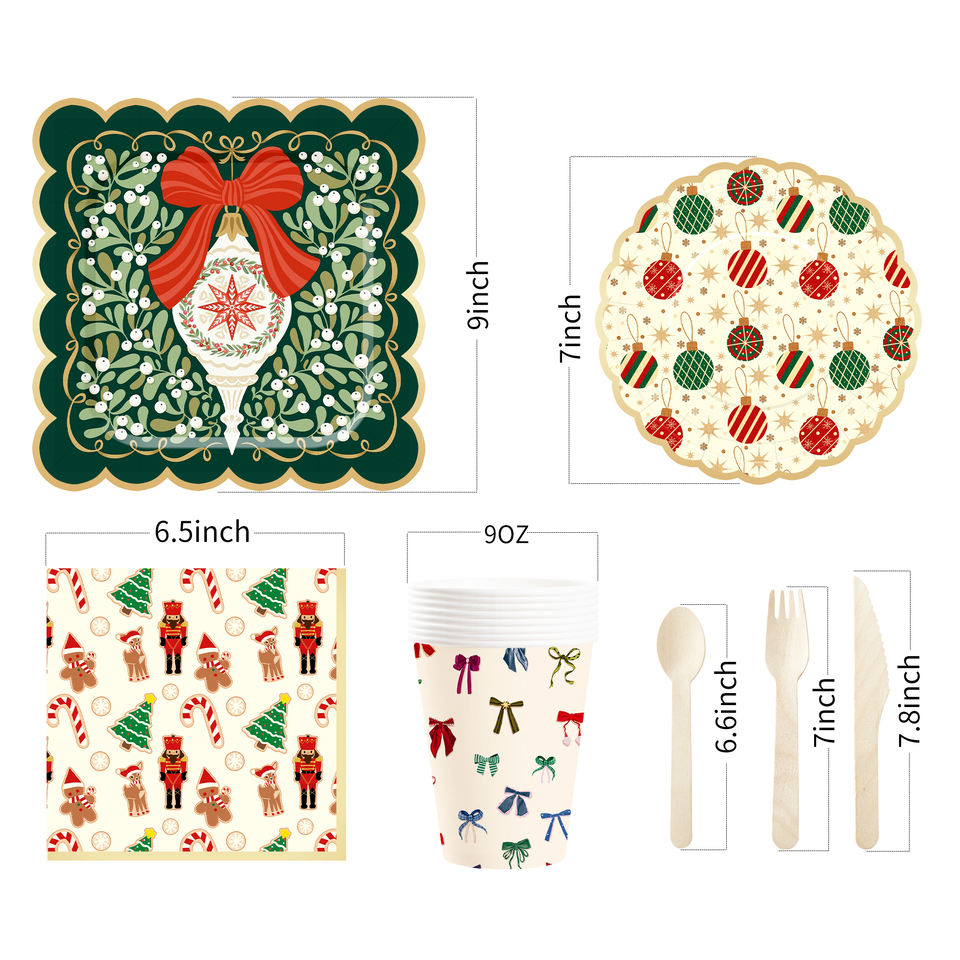 Ensemble de vaisselle de fête de Noël personnalisé DAMAI avec motif de bonbons en forme de casse-noisette, assiettes en papier jetables, gobelets, serviettes, décoration
