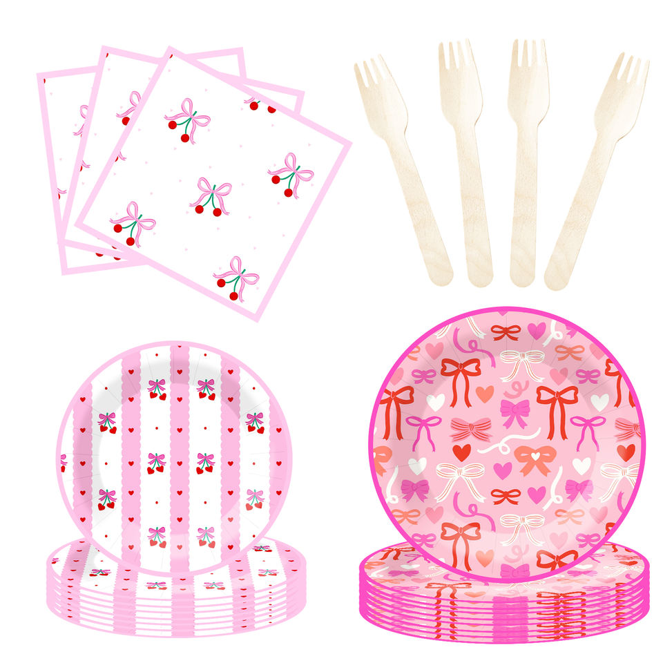 Mots-clés:ensemble de vaisselle jetable avec nœud rose