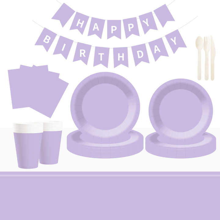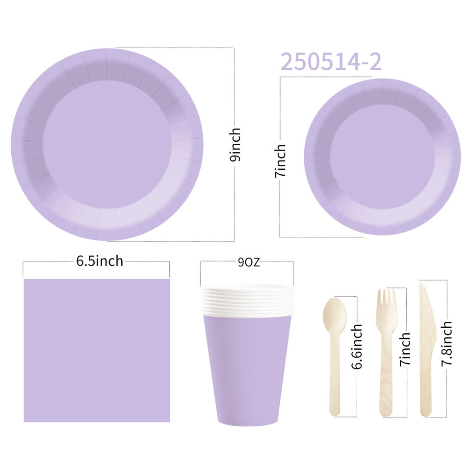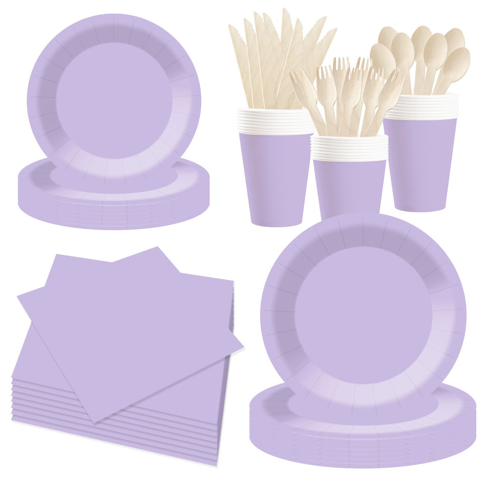 Service de table jetable DAMAI personnalisé, couleur unie, violet clair, assiettes, gobelets, serviettes en papier pour l'anniversaire des enfants