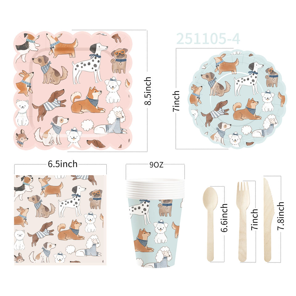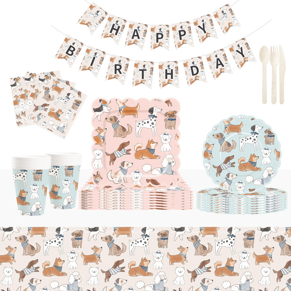 Ensemble de fête pour chien DAMAI, vaisselle de fête, anniversaire d'enfants, animaux de compagnie, comprenant des assiettes en papier, des serviettes, des nappes, des gobelets pour 8 invités
