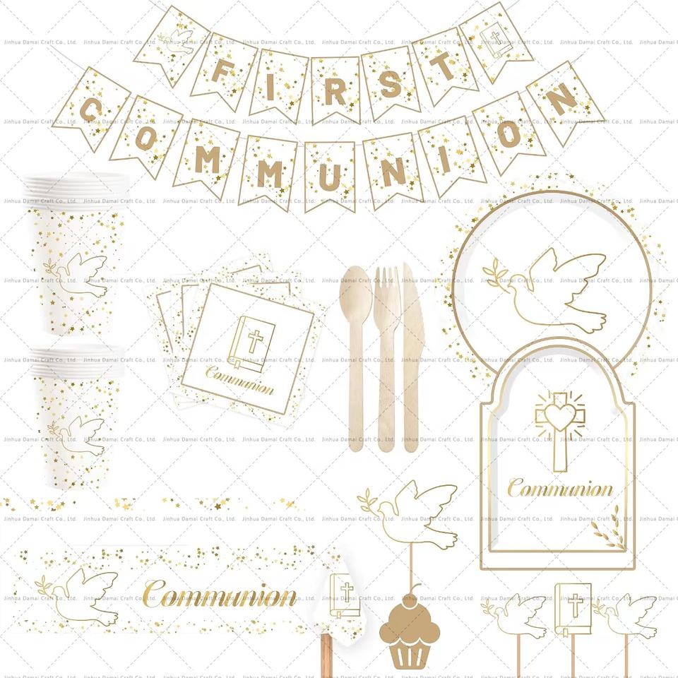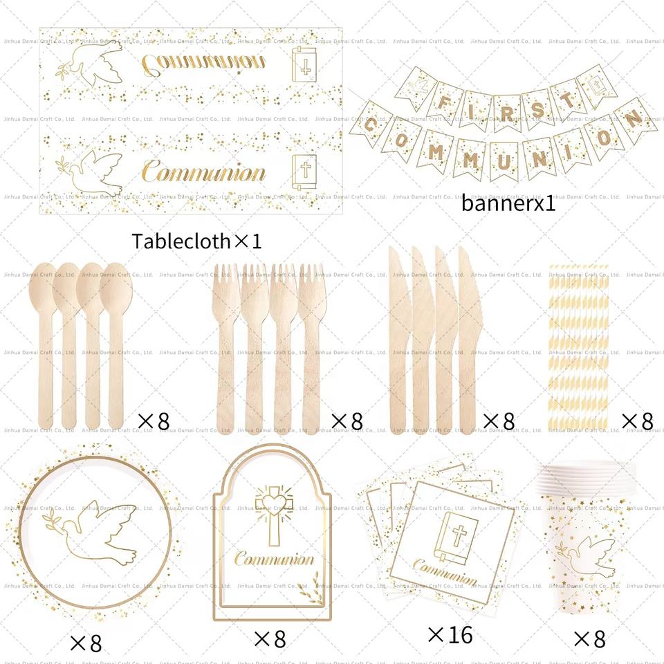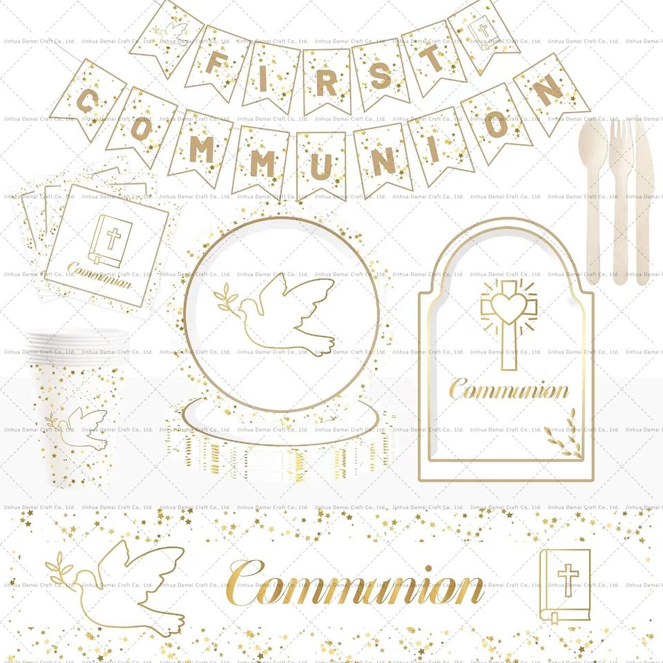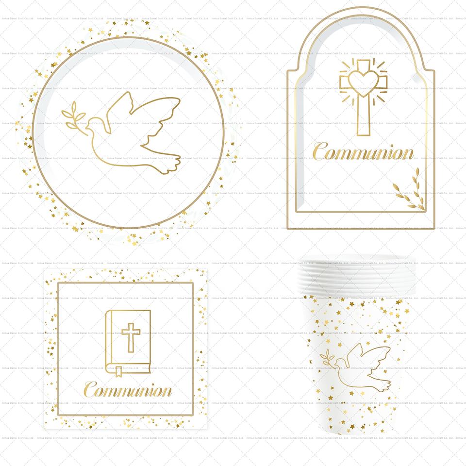 Assiettes et serviettes en papier jetables écologiques DAMAI pour la première communion et le baptême, décorations de fête