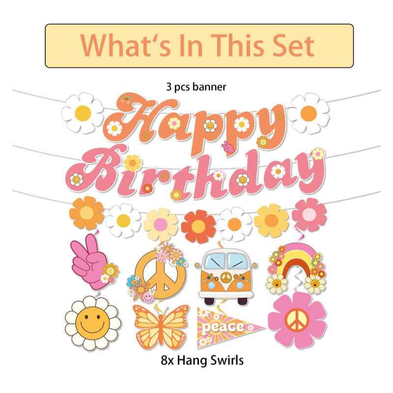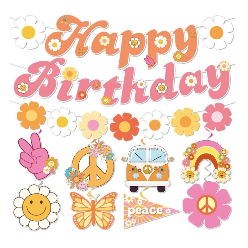 DAMAI Funky Hippie fête d'anniversaire bannière suspendue papier joyeux anniversaire décoration drapeau lettre bannière pour fournitures de fête