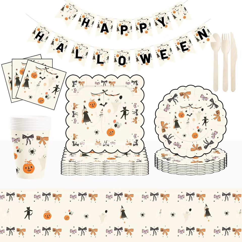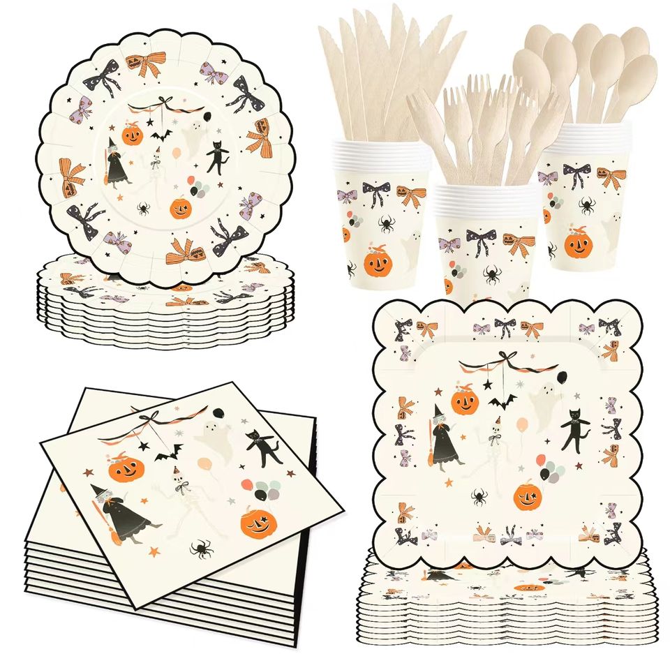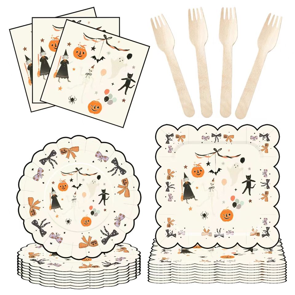 Assiettes en papier jetables pour fête d'Halloween DAMAI, impression personnalisée de citrouille, sorcière, chat, assiettes à dessert, ensembles de vaisselle de bonne qualité