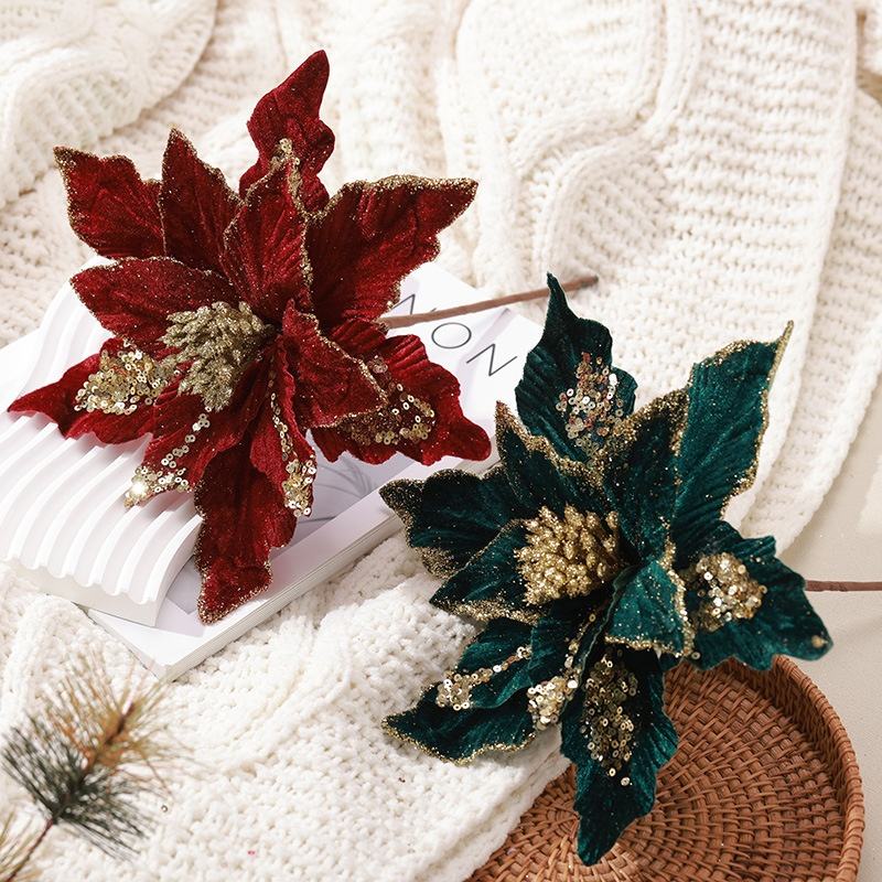 DAMAI Fleurs de Noël artificielles en tissu de velours faites à la main de haute qualité Nouveaux produits pour la décoration de l'arbre de Noël