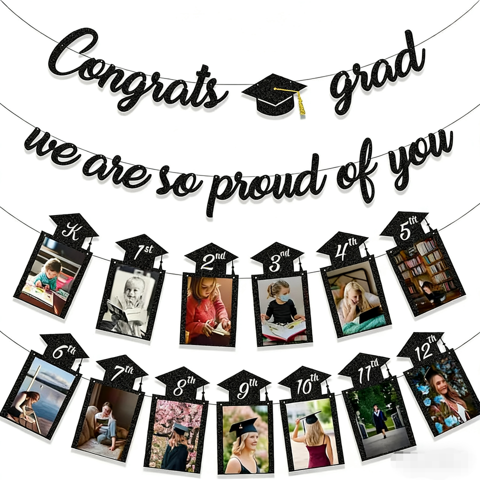 Bannière photo de graduation DAMAI K-12 pré-encollée « Nous sommes si fiers de vous » – Décorations de fête de remise des diplômes en gros