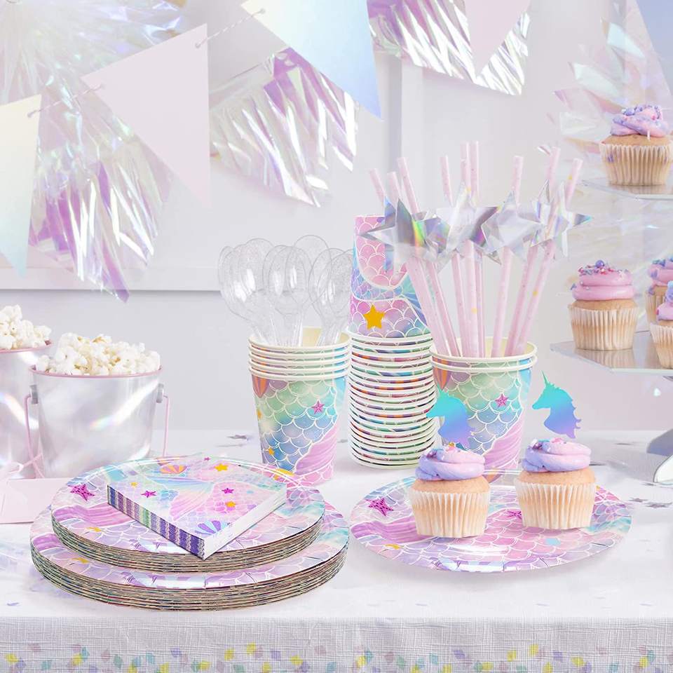 Ensemble de vaisselle jetable sur le thème de la sirène DAMAI, vaisselle de fête d'anniversaire pour filles, décorations de table
