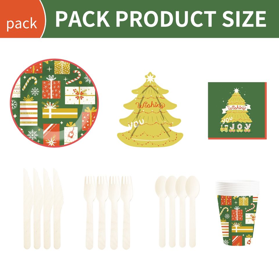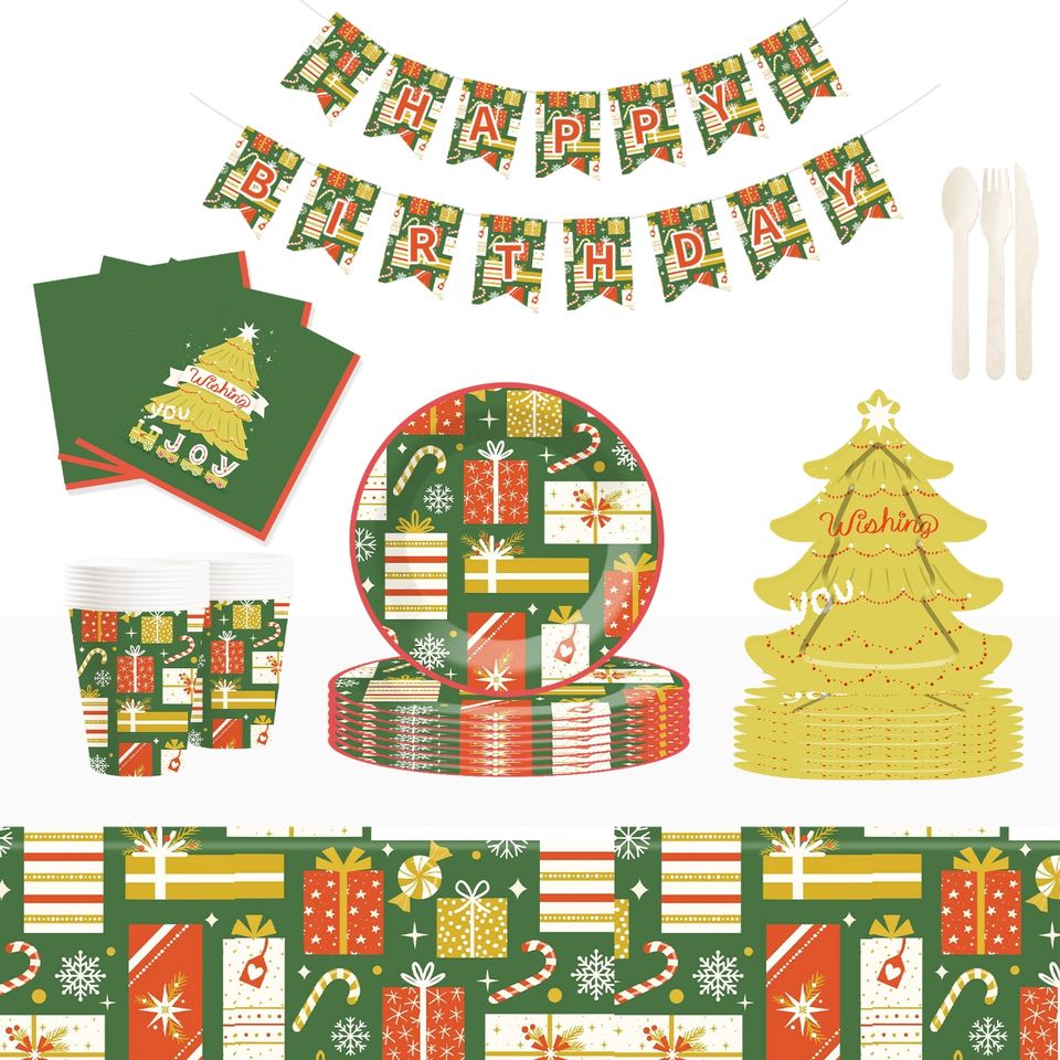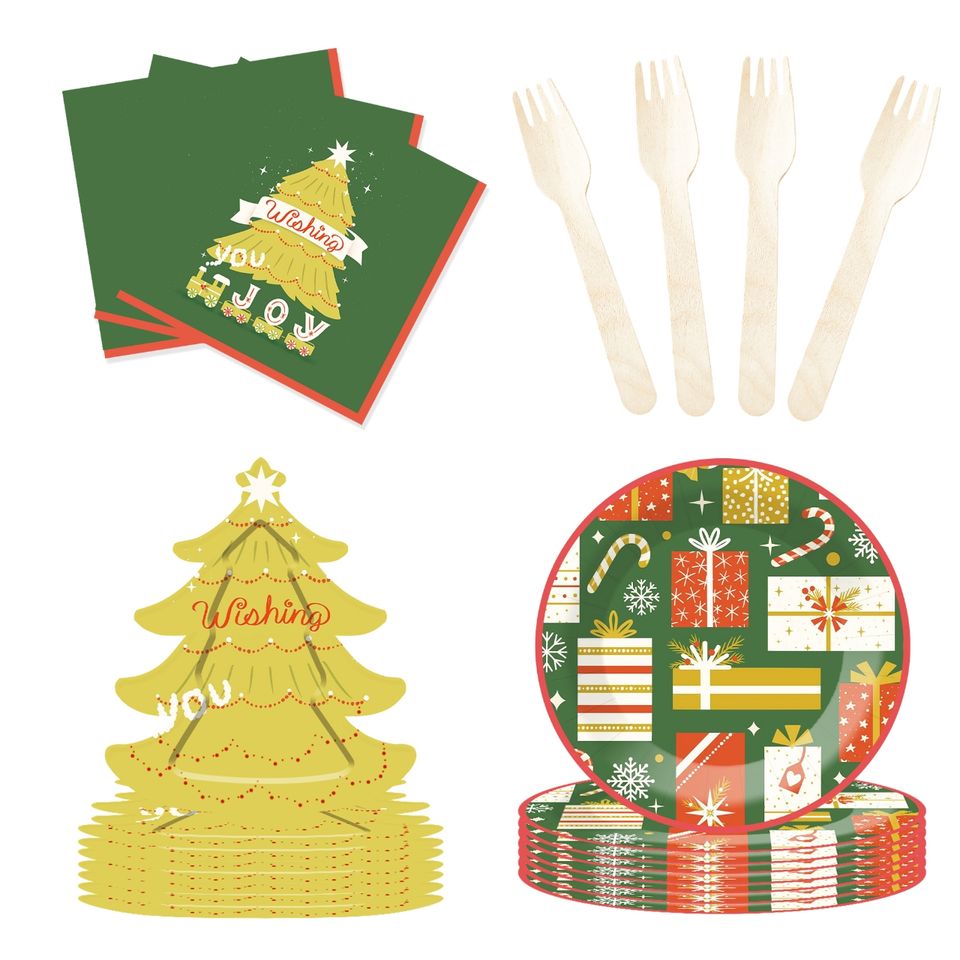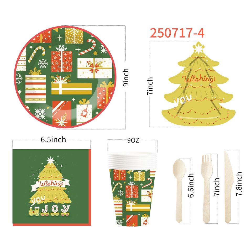 Ensemble de vaisselle sur le thème de Noël DAMAI comprenant des assiettes en papier en forme de sapin de Noël, des gobelets en papier et des serviettes pour la fête de Noël