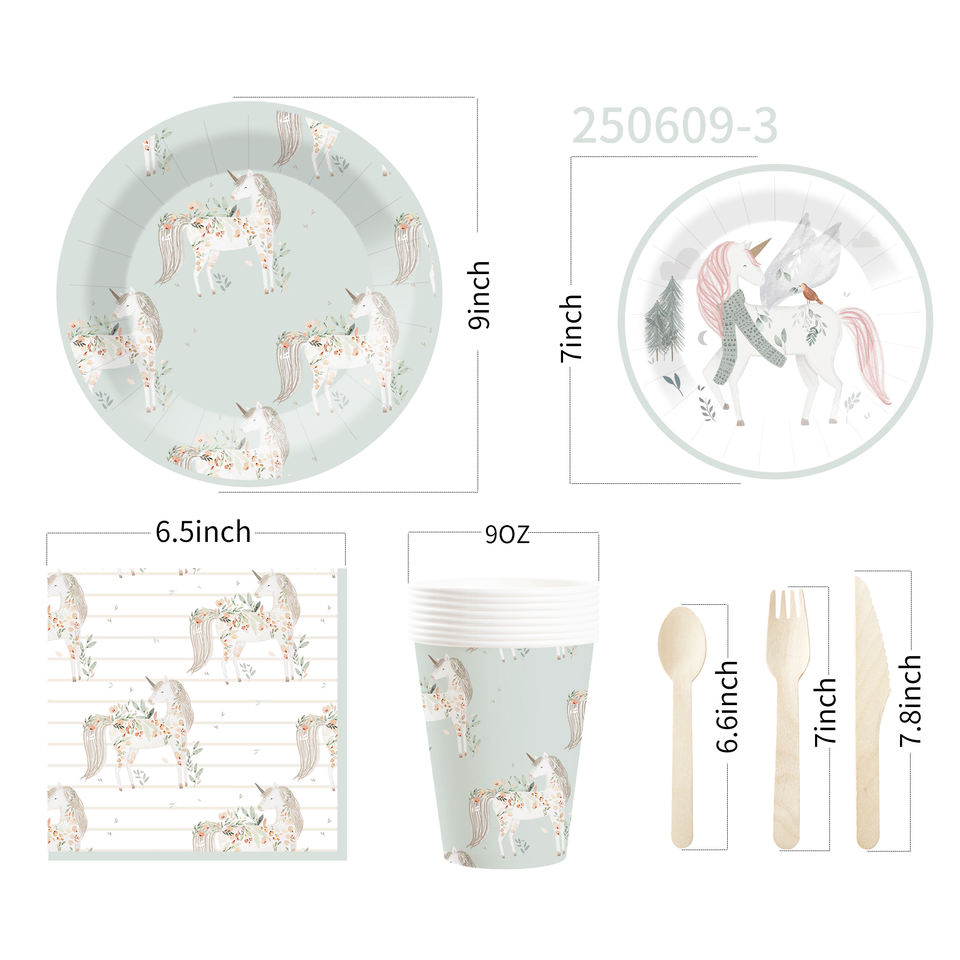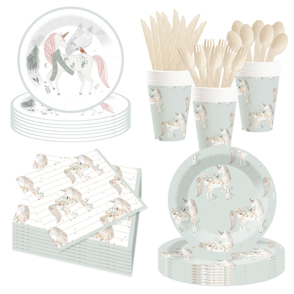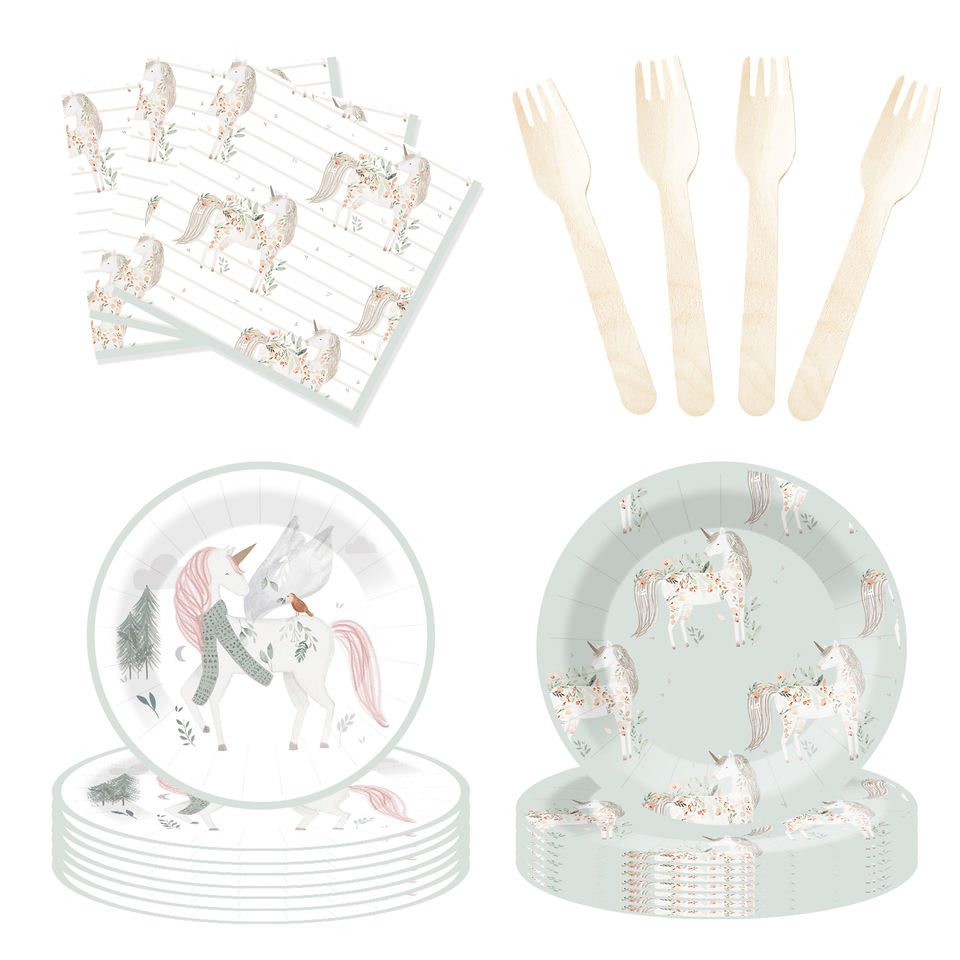 DAMAI Nouveau design personnalisé sur le thème de la licorne, assiettes rondes jetables, gobelets, serviettes, ensemble de vaisselle pour fête d'enfants