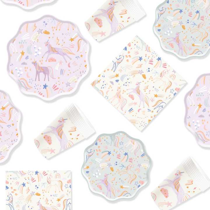DAMAI Nouvelle conception personnalisée Ensemble de vaisselle sur le thème de la licorne avec assiettes en papier jetables, serviettes et gobelets pour 10 invités