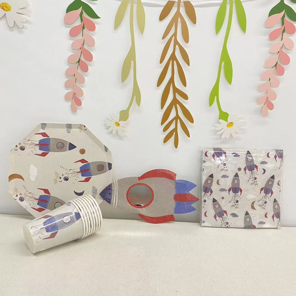 Ensemble de vaisselle sur le thème de la fusée DAMAI pour les anniversaires d'enfants, assiettes jetables, gobelets en papier, serviettes pour 8 invités