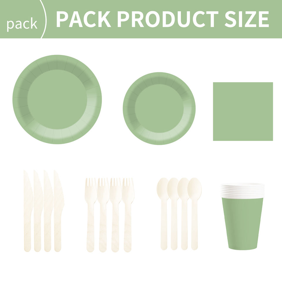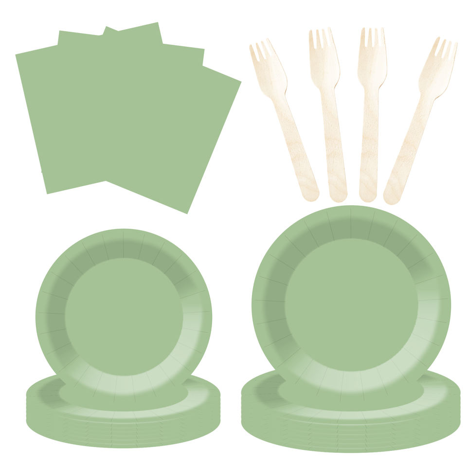 DAMAI Ensemble de vaisselle jetable en papier vert clair pour fêtes, assiettes de 7 et 9 pouces, gobelets en papier, serviettes