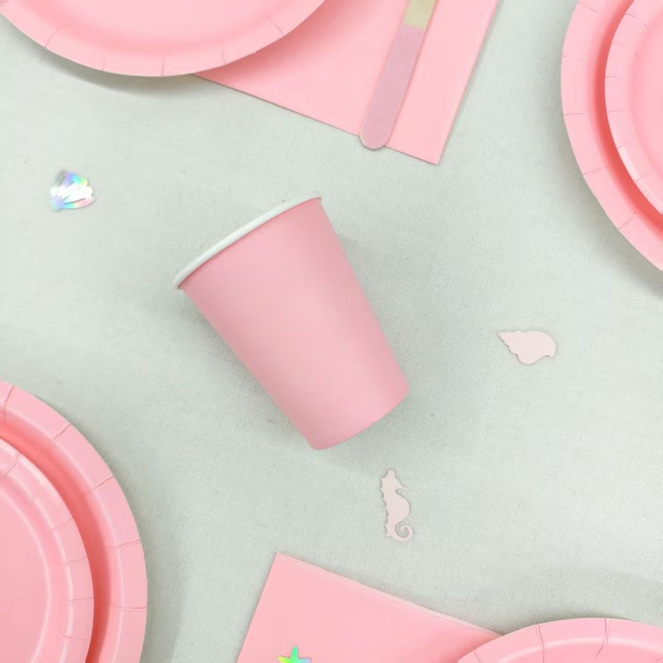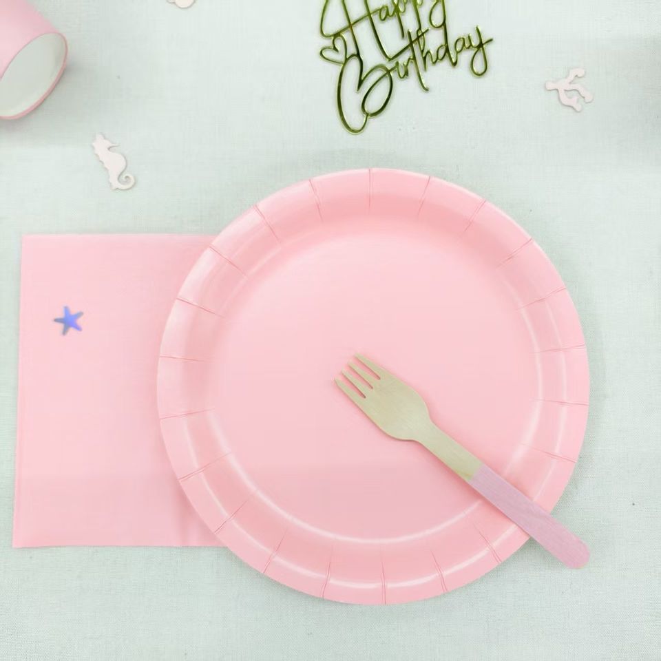 Assiettes de couleur unie DAMAI rose clair, décorations de table d'anniversaire, assiettes en papier jetables, gobelets, serviettes pour fournitures de fête, ensemble de vaisselle