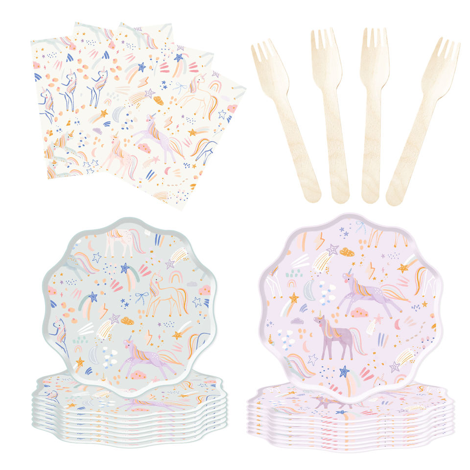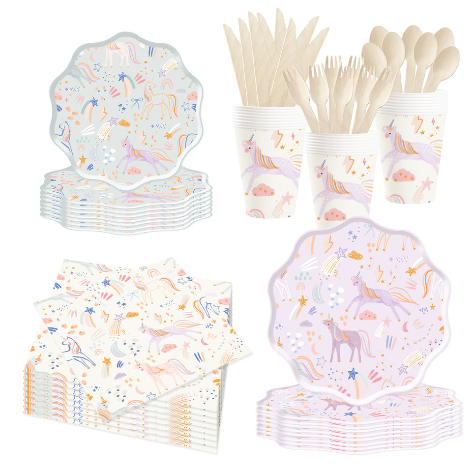 Ensemble de vaisselle jetable DAMAI Unicorn, assiettes et gobelets en papier à thème de dessins animés, fournitures pour fêtes d'anniversaire d'enfants, accessoires de décoration pour lieux de fête