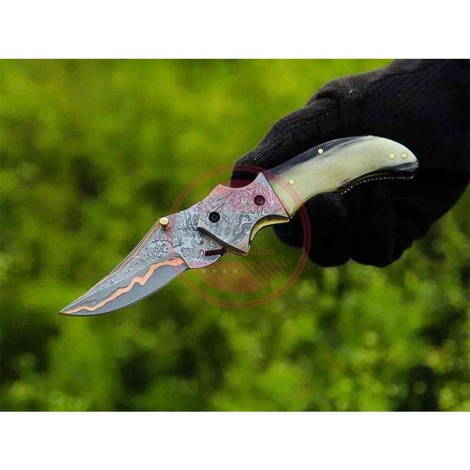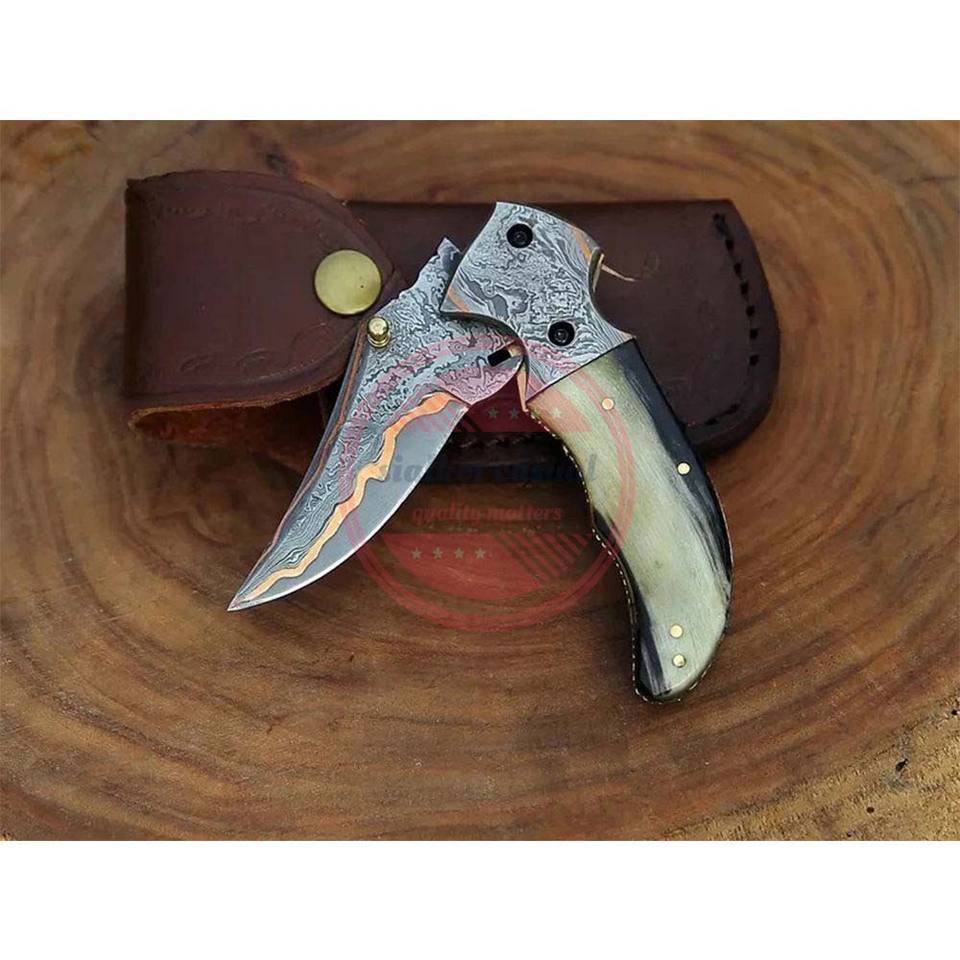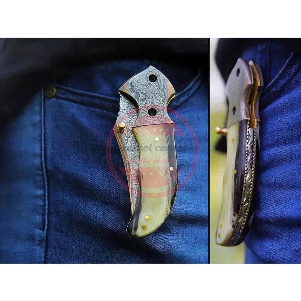 Couteau de poche en acier damas Couteau pliant fait main