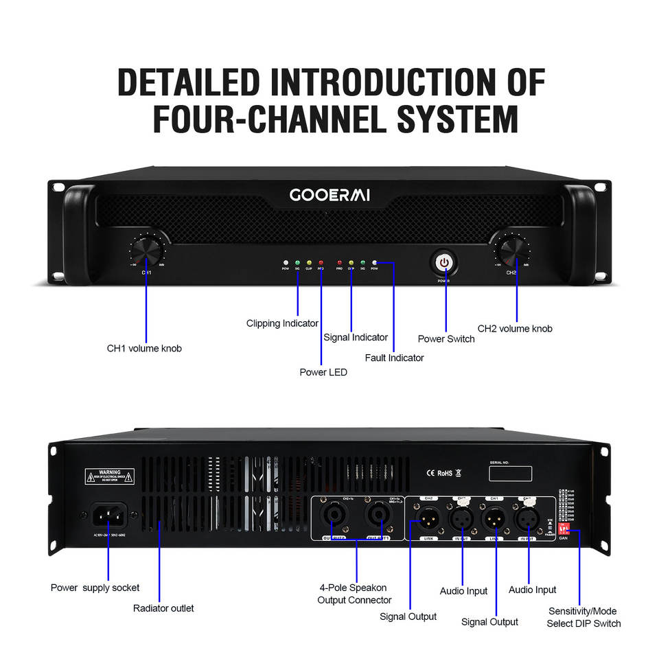 Amplificateur de Puissance Numérique Pro Audio DAN215 Classe D 2U 2 Canaux 1500W, Très Puissant 3750W sous 2 Ohms, Occasion