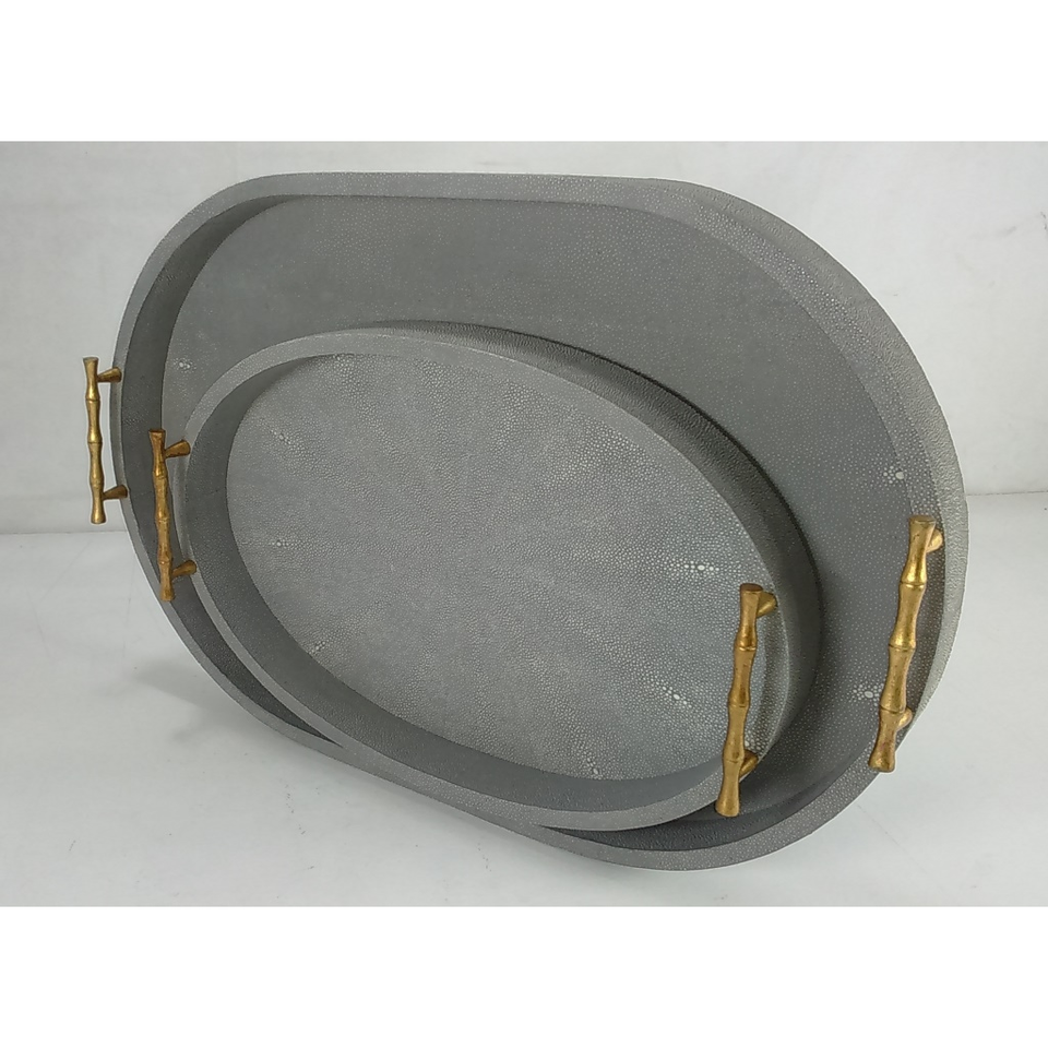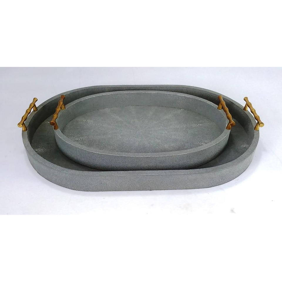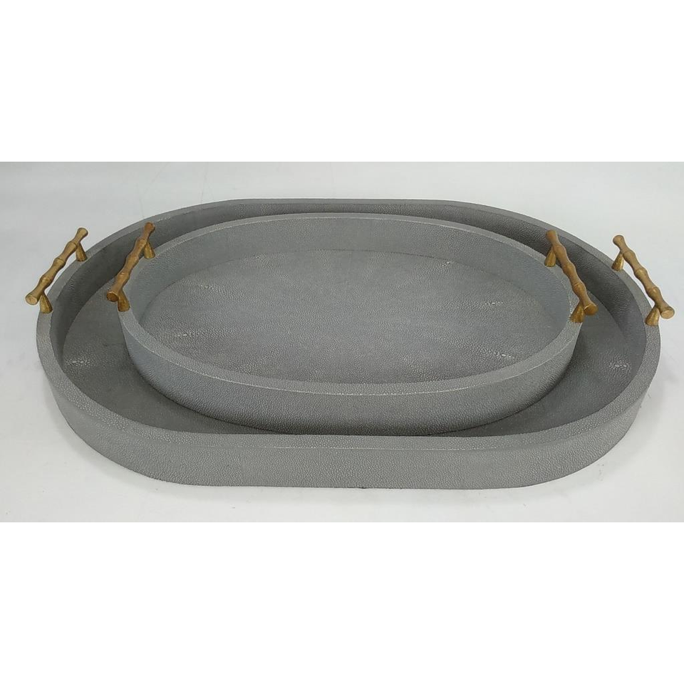 Plateau ovale rétro en faux shagreen avec poignée, modèle DAPHOCO 078, origine Vietnam, couleur charbon, 0,51x0,38x0,065