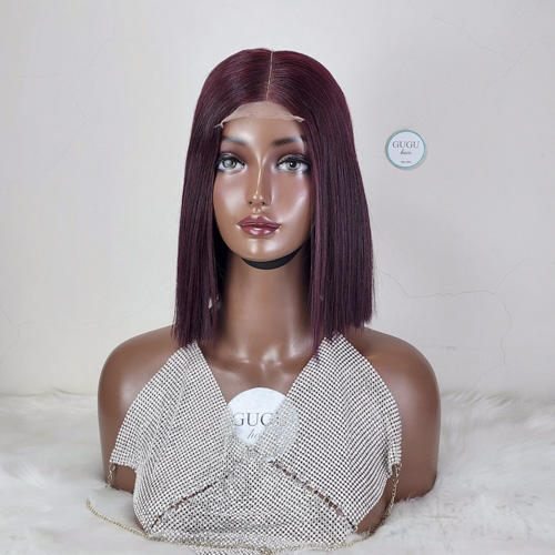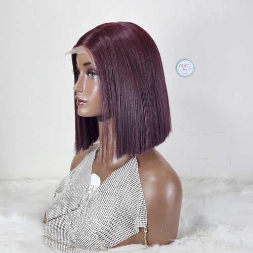 BORDEAUX FONCÉS 99J PERRUQUE DROITE À FERMETURE EN DENTELLE OMBRE PERRUQUES COURTES BOB
