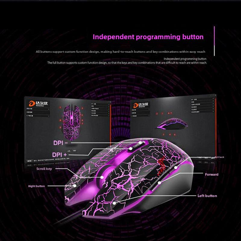 Souris de jeu filaire DARUO Wrangler, interface USB, 7 boutons, rétroéclairée, programmable pour LOL/CF PlayerUnknown's Battlegrounds E-Sports