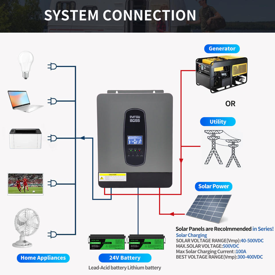 Onduleur Solaire Hybride DATOU BOSS 24V 3000W avec MPPT 220V 230V Hors Réseau SP 3200 Système Solaire Domestique Onduleur à Onde Sinusoïdale Pure