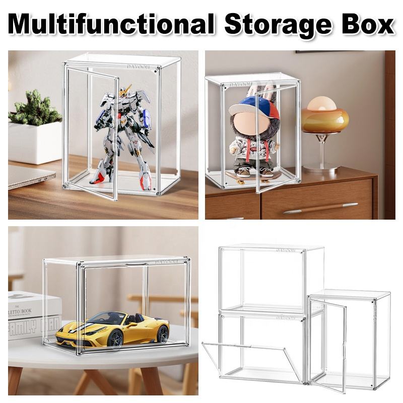 DAYOOH Étagère de présentation transparente pour figurines d'anime, boîte de présentation de figurines en acrylique empilable, pliable et anti-poussière